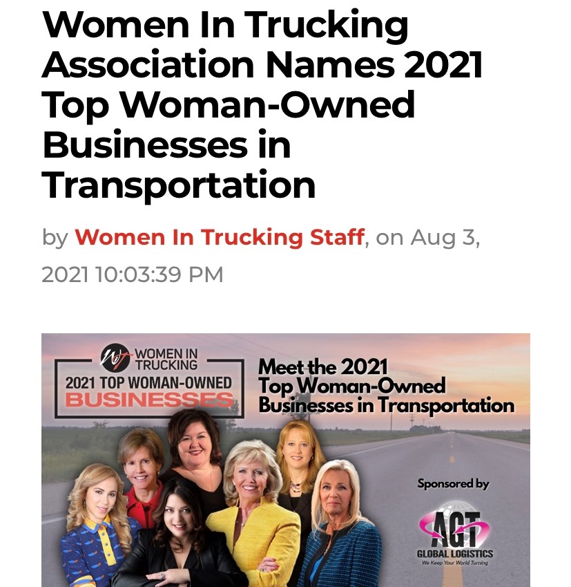 We are pleased to announce Women in Trucking Association names Aria Logistics LLC as one of 2021’s Top Women Owned Business in Transportation for a third year! To read more click on the article!