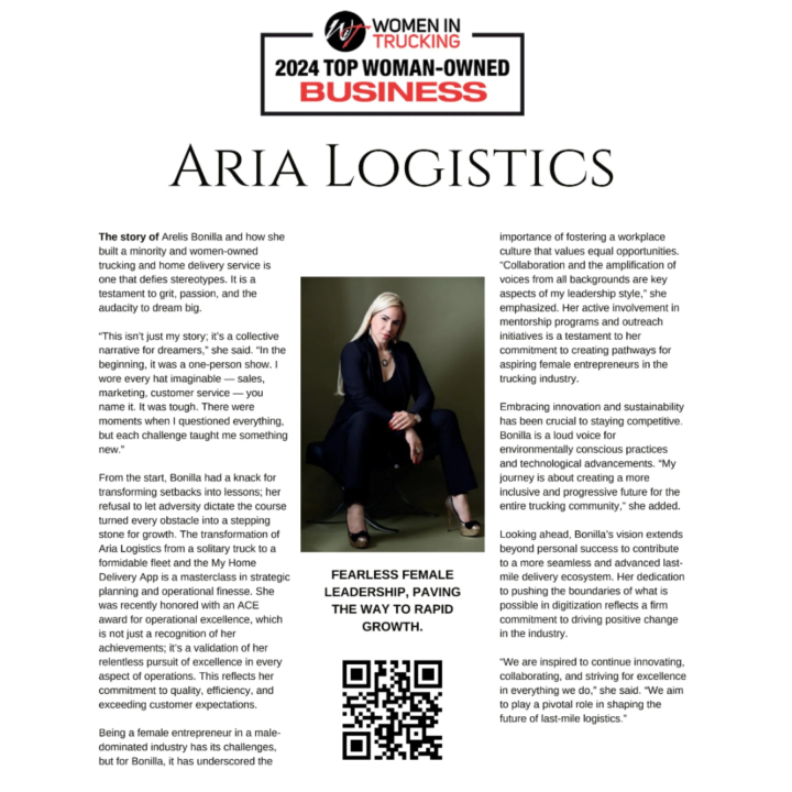 Content: Explore the trailblazing world of logistics with Arelis, Founder & CEO of Aria Logistics LLC! Renowned for expertise in heavy and bulky goods delivery, Arelis’s journey is a saga of resilience, strategic growth, and commitment to excellence. Dive into her inspiring journey and learn about Aria Logistics’ new initiative, My Home Delivery, in the latest issue of CXO Magazine.