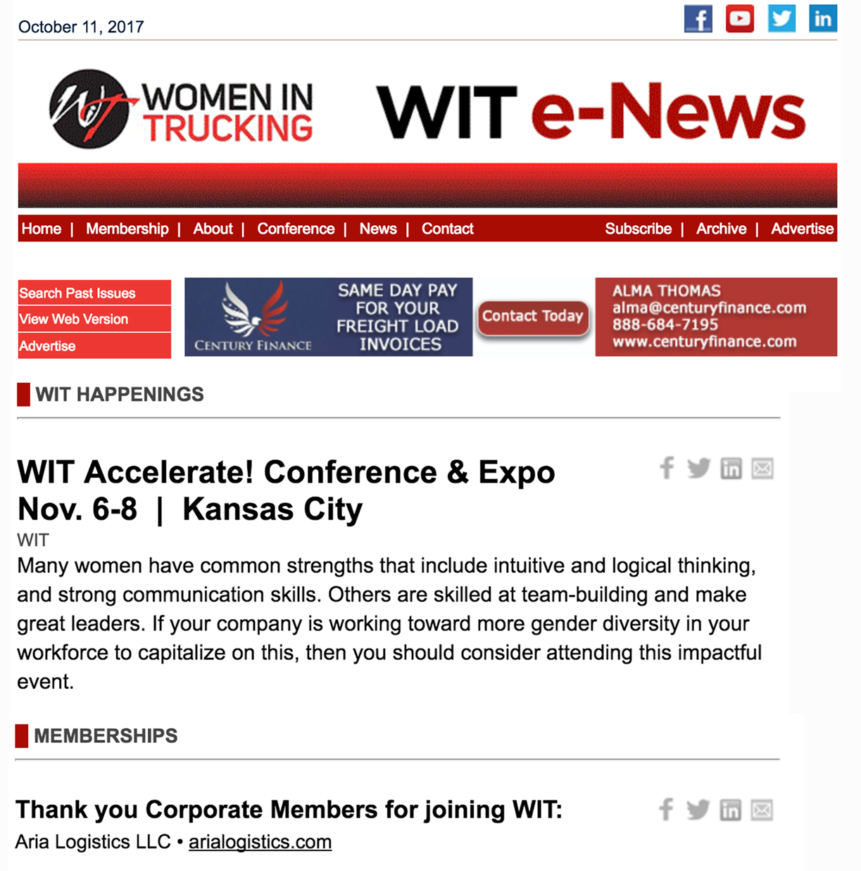 We are delighted to announce that Aria Logistics was named once again as one of the Top Companies for Women to work for in Transportation in 2021 by the Women in Trucking Organization!