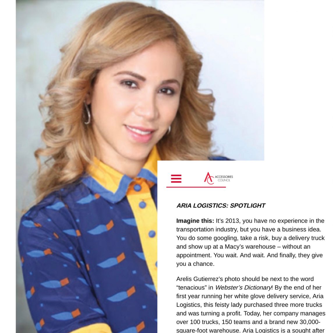 Check us out on the 2021 digital publication for the Accessories Council! It features a beautiful piece on Arelis (CEO) & Aria Logistics.