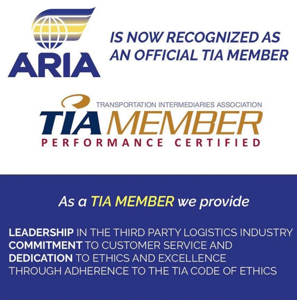 Aria Logistics is officially TIA certified!! TIA is a transportation intermediaries association that helps third party logistics professionals like ourselves better manage their companies for growth and profit.